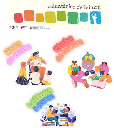 Atividades da Biblioteca orientadas por um Voluntário de Leitura adulto.